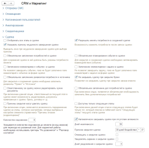 Включает целый блок доп. реквизитов в карточке сделки. Нужен, если вы хотите хранить свои параметры (специфические данные о сделке).