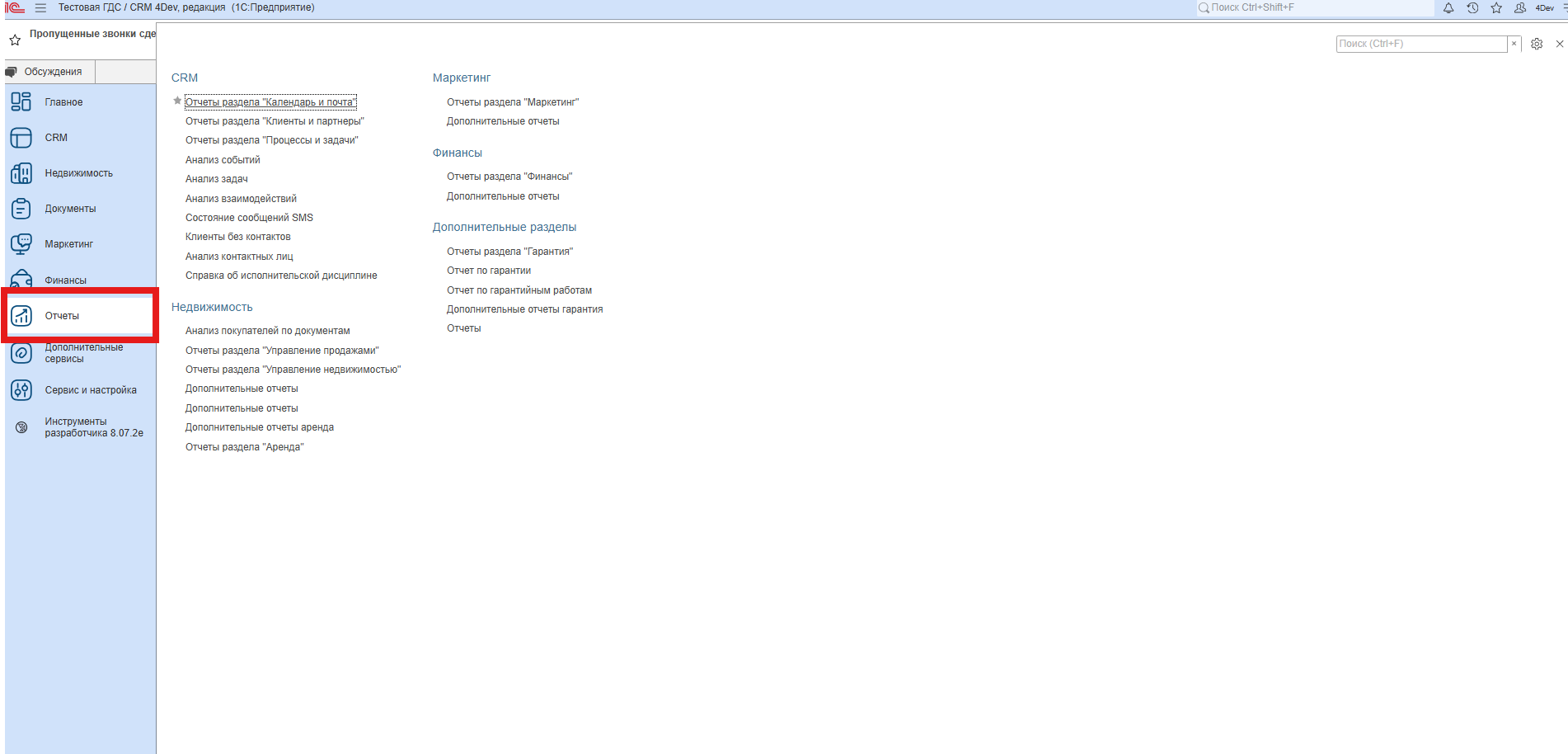 - `Недвижимость` - отчеты по объектам, продажам, аренде и недвижимости.