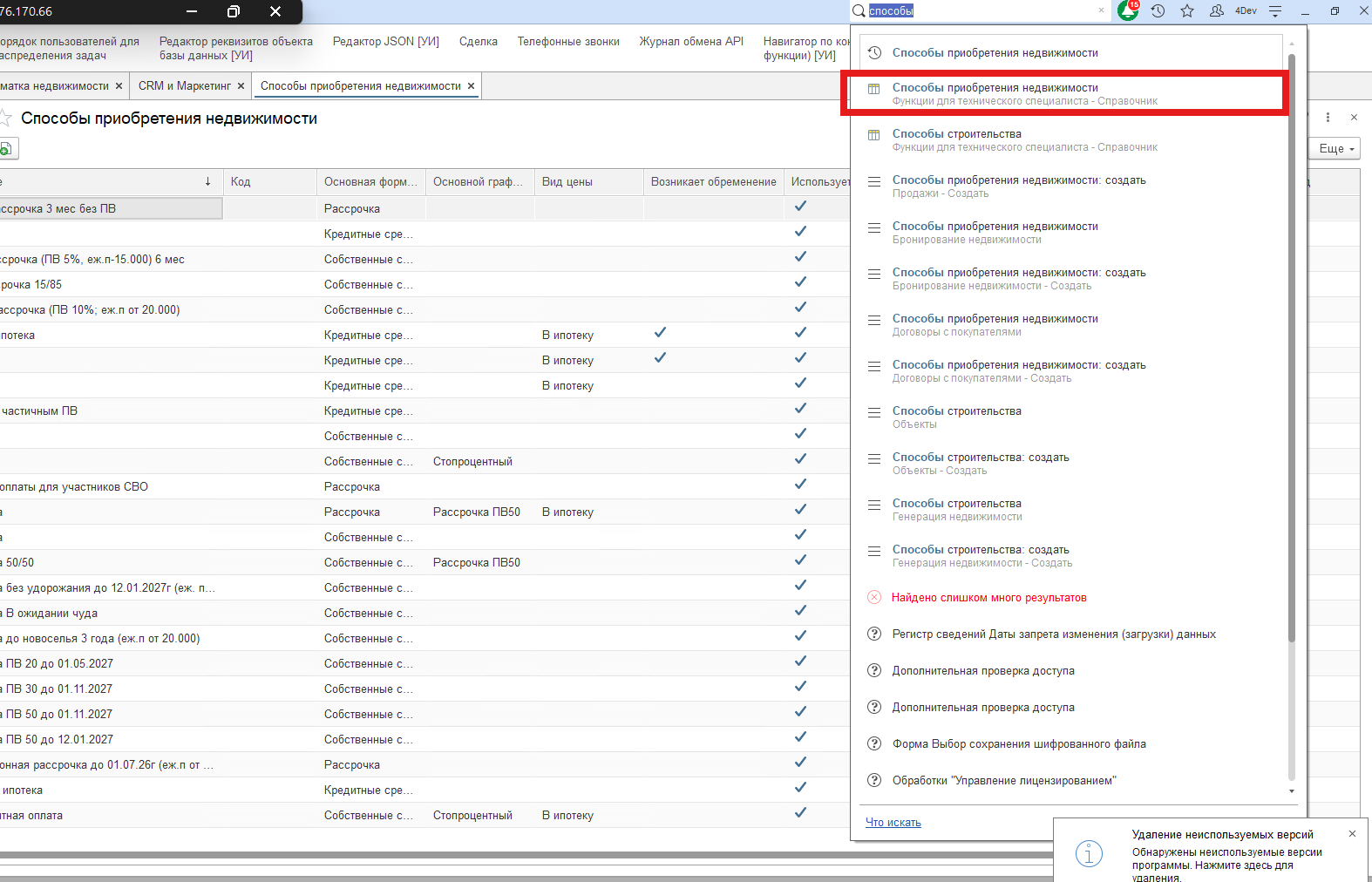 - исключить отображение лишних вариантов при создании сделки/договора