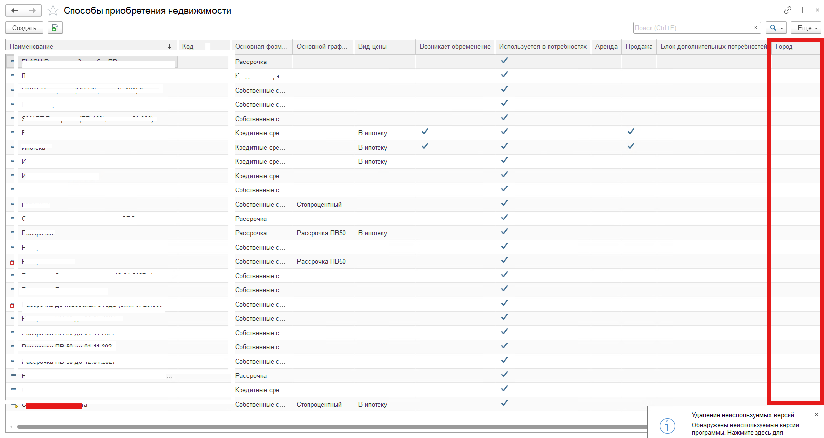 - В справочнике «Способы приобретения недвижимости» для каждой записи можно указать: