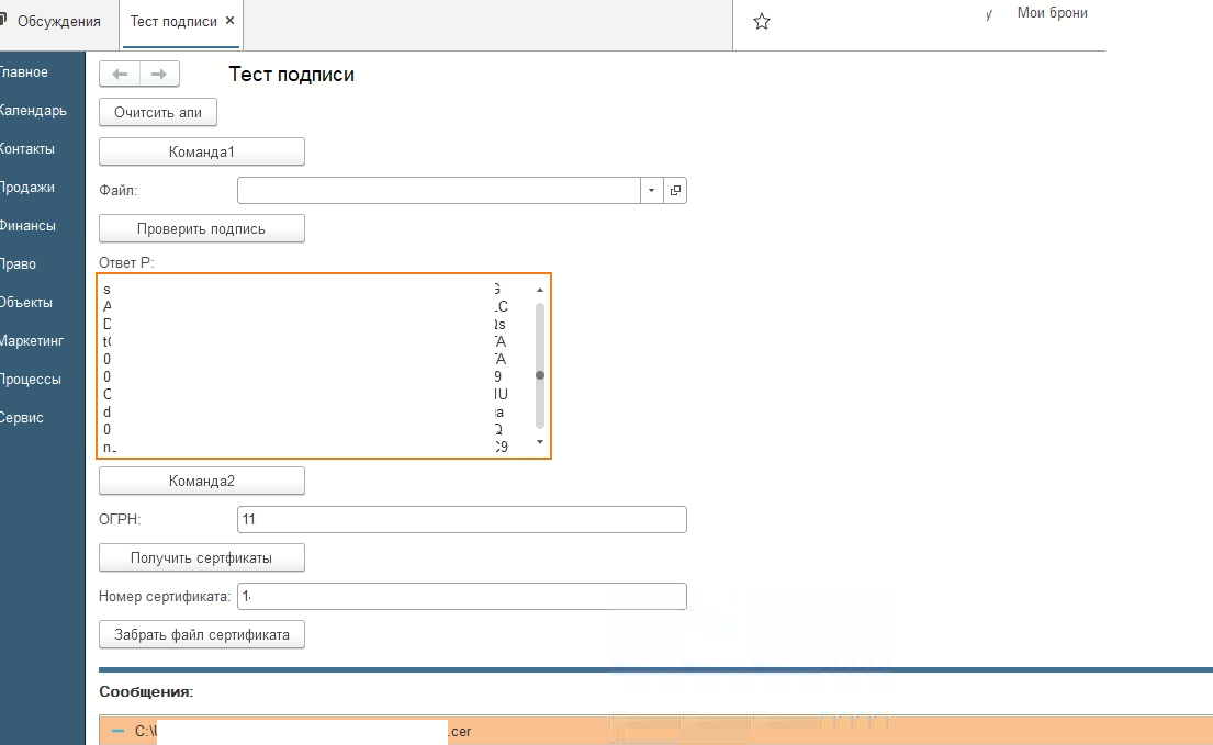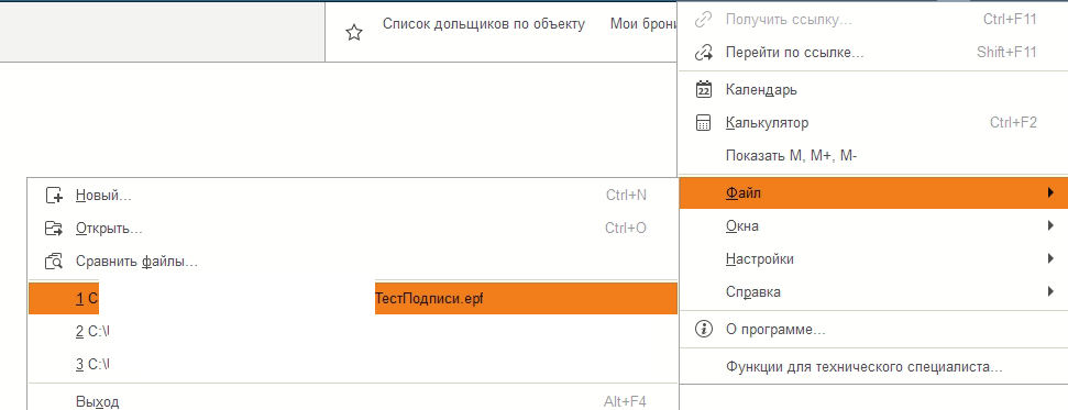 Заходим в 1С и открываем внешний файл «Тест подписи.epf» (рис. 1).