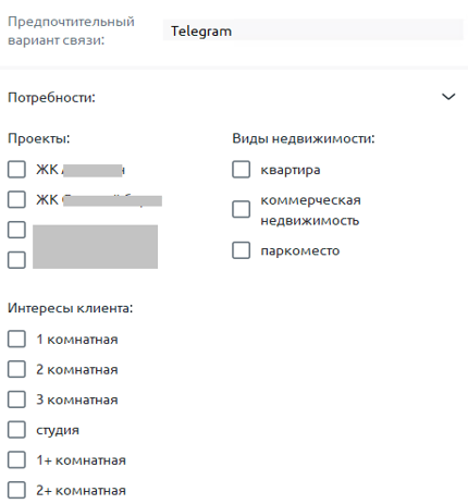 Затем переходим к предпочтительному варианту связи и потребностям: