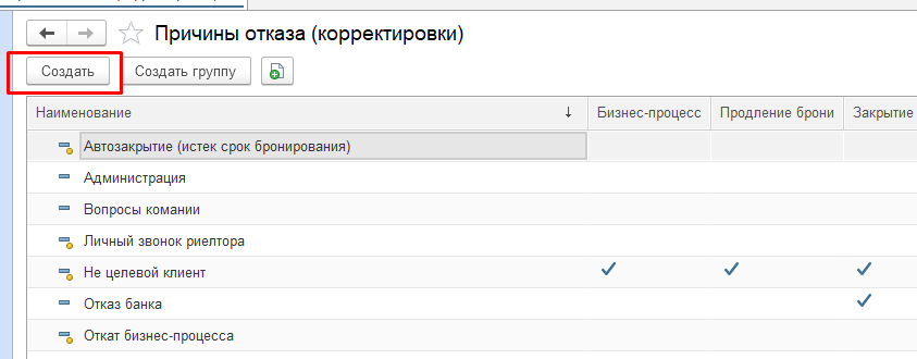Для создания причин отказов необходимо совершить следующие действия